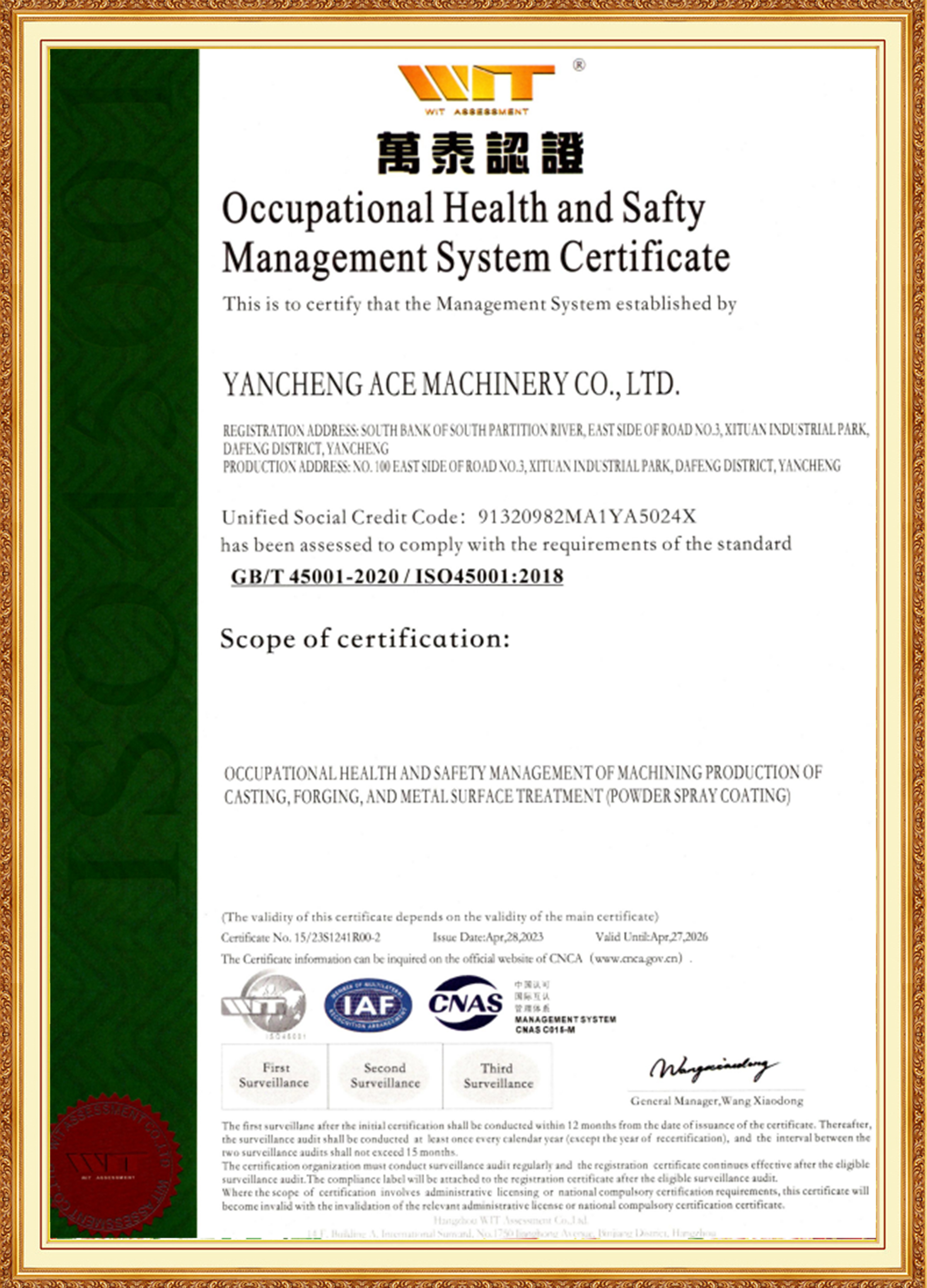 에이스그룹 소재, 열처리, 기계, 표면처리 산업에 경험이 풍부한 젊은 핵심멤버들로 구성된 경영팀이 지원하고 있습니다. 그들은 국제 및 국내 표준에 정통하고 선구적이며 혁신에 전념하고 있습니다. 자회사 ACE Machinery는 TÜV Rheinland ISO 9001 품질 경영 시스템 인증과 ISO 14001, 45001 및 50001 시스템 인증을 통과했습니다. 전문화되고, 세련되고, 독특하고, 혁신적인 기업, 국가 하이테크 기업으로 인정받고 있으며 3A 수준의 기업 신용 등급을 보유하고 있습니다.